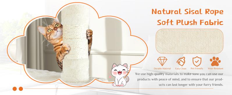 The scratching posts are wrapped in natural sisal rope, ensuring safety and durability. And to guarantee stability, the base board is reinforced with multiple layers of thick material.