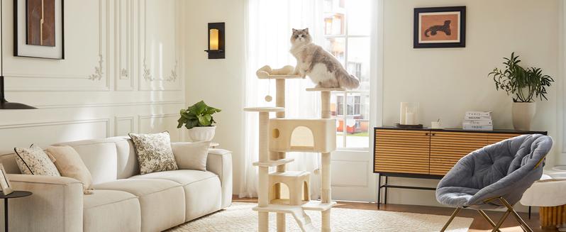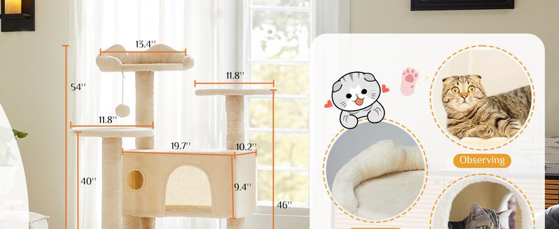 We only use pet-friendly materials for better products. The cat tower is covered in thick, plush fabric to keep your furry friends warm and comfortable.
