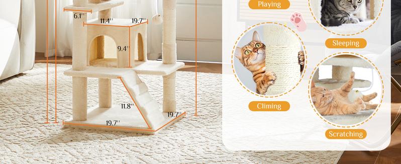 With three sisal rope pillars, your furry kids can satisfy their natural scratching instincts. The dangling balls, complete with delightful bells, which ensure cats experience with the thrill of the hunt anytime they please. And the cleverly designed ramp makes climbing an absolute breeze, adding an extra dash of adventure to their playtime.